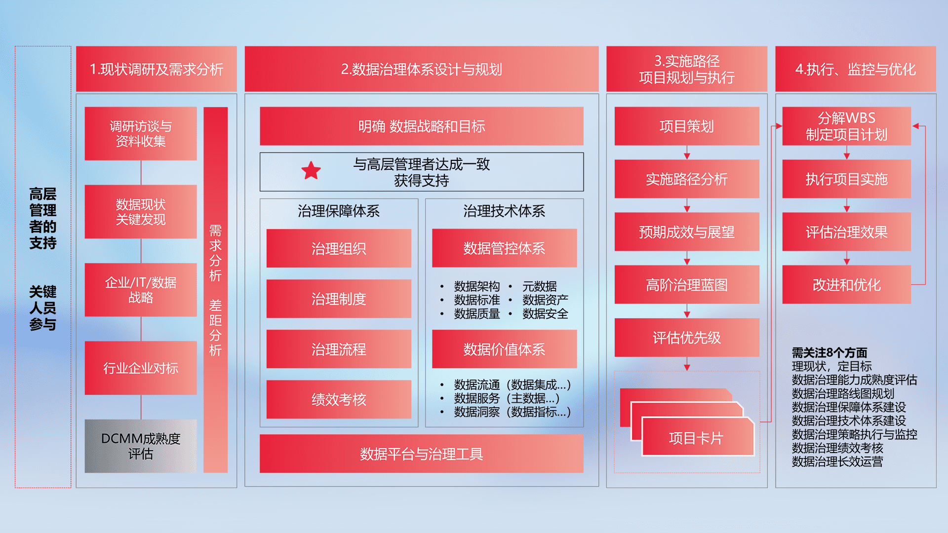制定并执行统一的数据标准,,,规范数据定义和格式,,消除冗余和不一致性,,实现跨部门和跨系统的数据一致性,,,,为企业提供标准化的数据基础。。。。